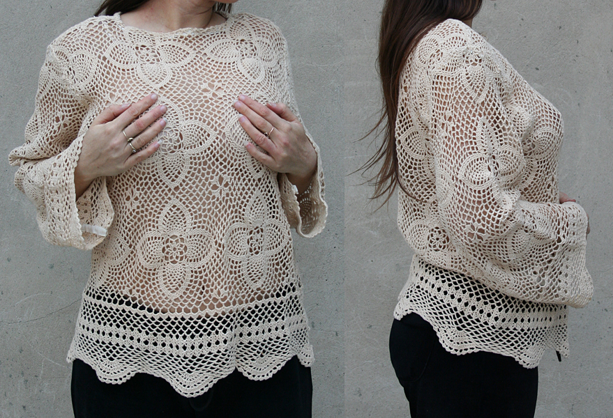 13. Häkel Pullover beige, Größe 38/40, edles Oberteil aus durchgehend gehäkeltem Material, die Bilder sagen alles, gern getragen aber mangels passender Anlässe sehr gut erhalten, keinerlei Mängel