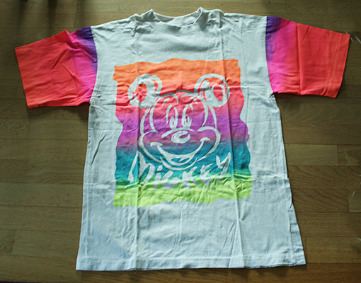 5. Mickey Mouse T-Shirt von Walt Disney Company in Neonfarben, Material 100 % Baumwolle, Im Schild steht Größe 34 bis 36, ist aber eher 38 bis 40 ( es sei denn man trägt es gerne sehr weit ) nur wenige male getragen, frisch gewaschen, sehr guter Zustand, keinerlei Mängel