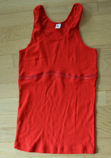 19. Muskel Shirt für Ladys rot, Größe 36 / 38, super Zustand, vorn mit transparentem Einsatz unter der Brust, mit Brustabnähern, Material 100 % Baumwolle