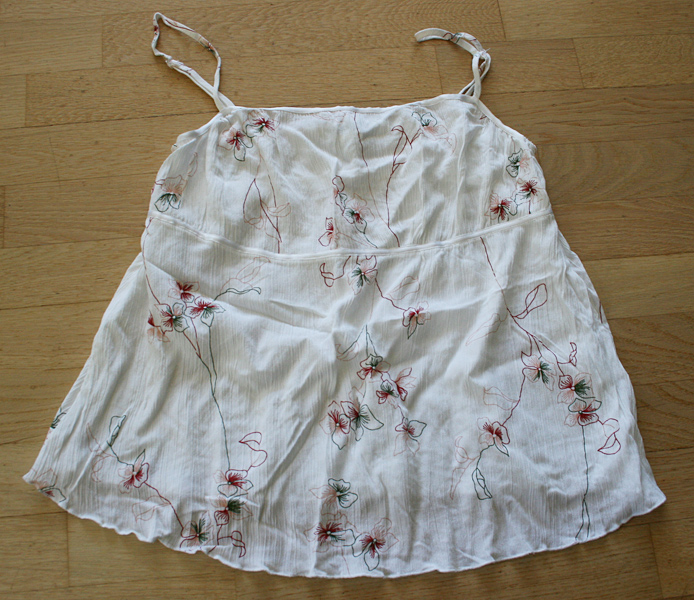 28. Spaghettiträger Top flatterig, weiß mit Aufdruck. Neu aber ohne Schilder. Hat mir leidr nicht gepasst. Größe 38 theoretisch aber nicht mit 75D eher für A oder B Körbchen vielleicht noch c.